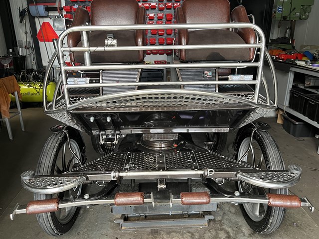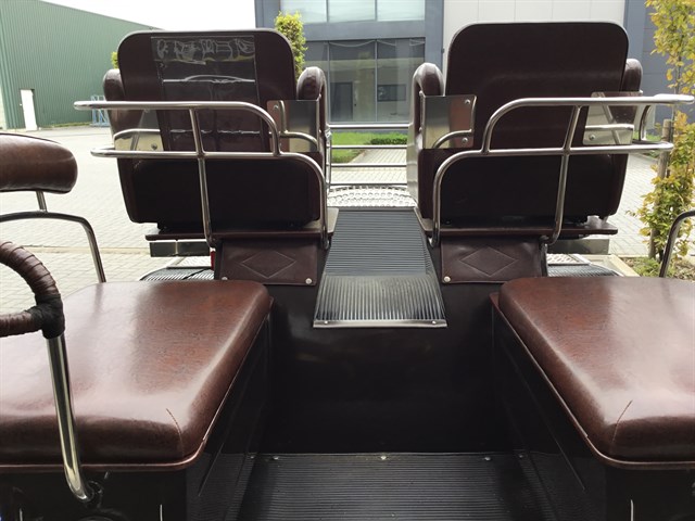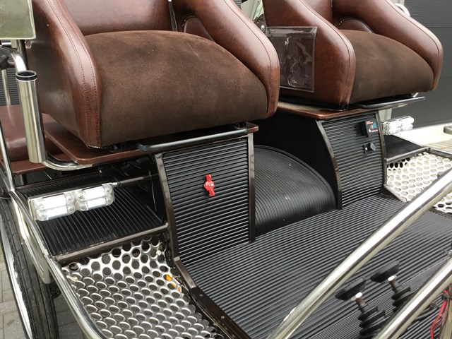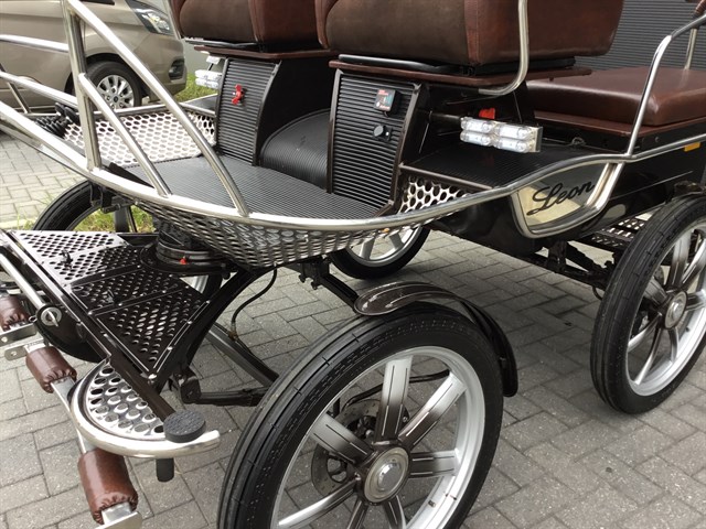 De wagen is geschikt voor Cob maat of kleine paarden.